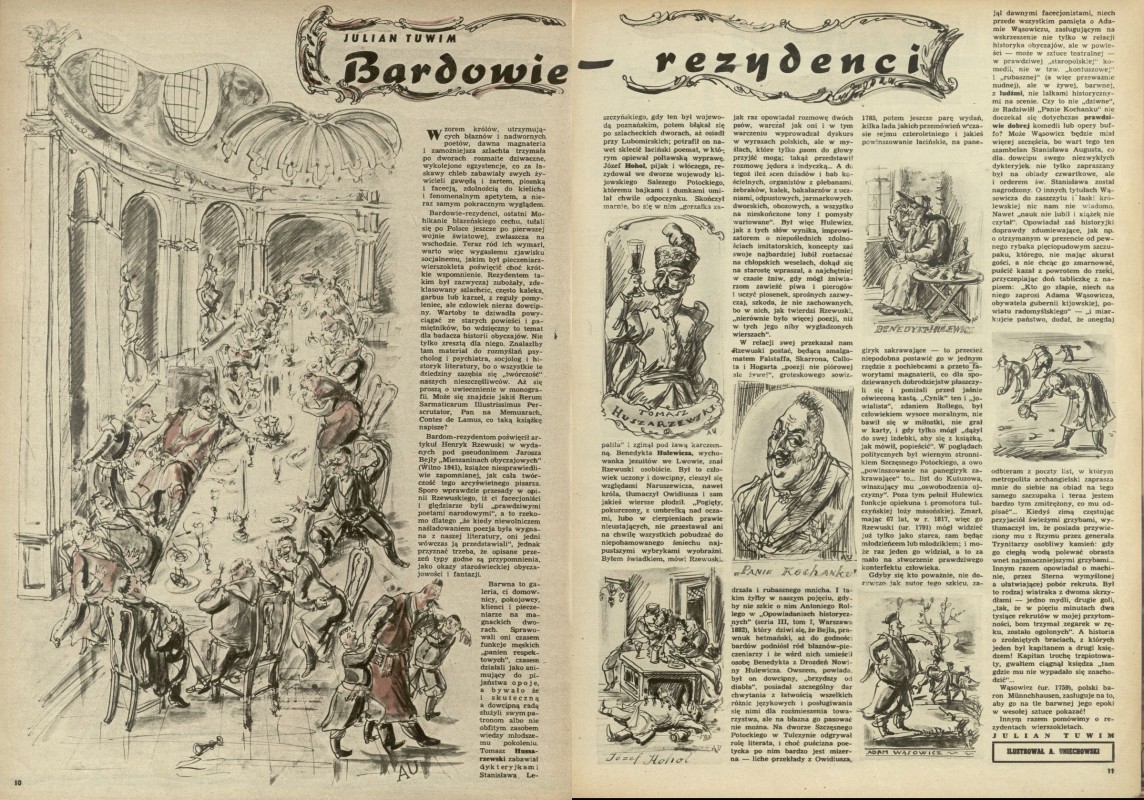 Archiwum / Społeczeństwo nr 74 (36/1946) 42/62 Podziel się Tytuł Bardowie rezydenci Autor Julian Tuwim Kategoria Społeczeństwo Artykuł z numeru 74 (36/1946) Data wydania 8 września 1946 Tagi szlachta bardowie Józef Hohol Tomasz Huszarzewski Adam Wąsowicz