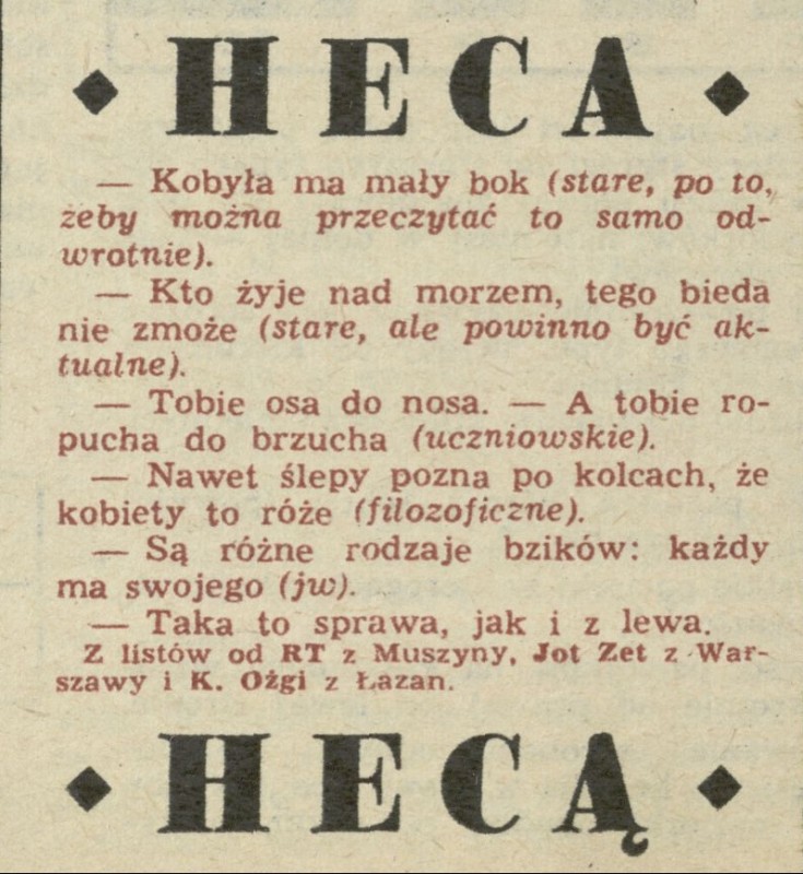 Archiwum / Heca hecą nr 2133 (17/1986) 32/46 Podziel się Tytuł Heca hecą Rubryka Heca hecą Artykuł z numeru 2133 (17/1986) Data wydania 27 kwietnia 1986