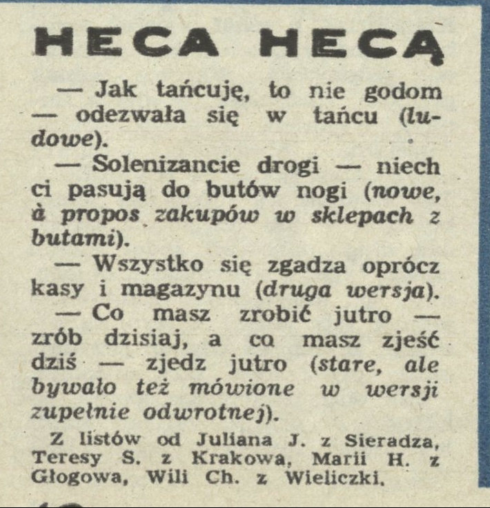 Archiwum / Heca hecą nr 1977 (18/1983) 81337/123969 Podziel się Tytuł Heca hecą Rubryka Heca hecą Artykuł z numeru 1977 (18/1983) Data wydania 1 maja 1983