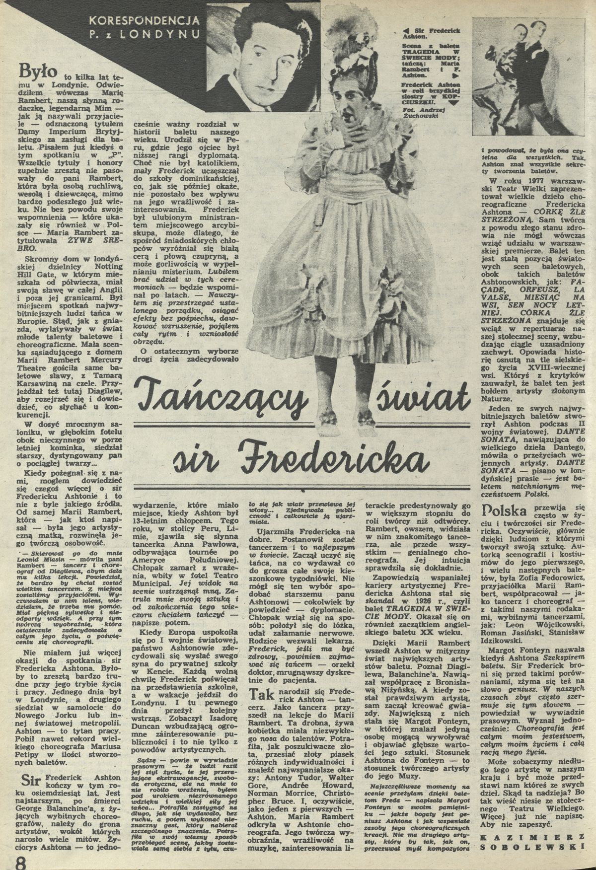 Archiwum / korespondencja własna "Przekroju" nr 2154 (38/1986) 16/28 Podziel się Tytuł Tańczący świat sir Frederica Autor Kazimierz Sobolewski Rubryka korespondencja własna "Przekroju" Artykuł z numeru 2154 (38/1986) Data wydania 21 września 1986 Tagi Londyn Wielka Brytania Anglia Maria Rambert Frederick Ashton taniec balet teatr