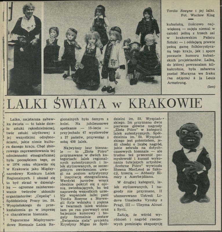 Archiwum / Kultura nr 2311 (39/1989) 95190/123969 Podziel się Tytuł Lalki świata w Krakowie Autor Lov Kategoria Kultura Artykuł z numeru 2311 (39/1989) Data wydania 8 października 1989 Tagi Wacław Klag lalka