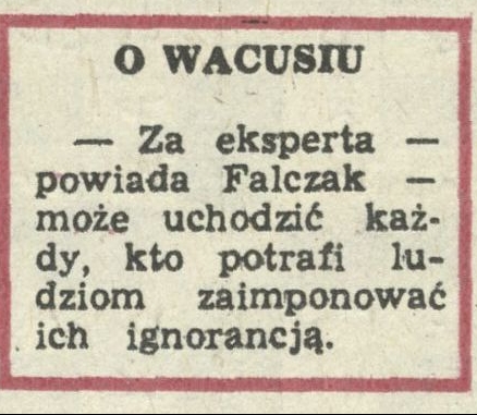 Archiwum / O Wacusiu nr 2169 (01/1987) 89016/123969 Podziel się Tytuł O Wacusiu Rubryka O Wacusiu Artykuł z numeru 2169 (1/1987) Data wydania 4 stycznia 1987