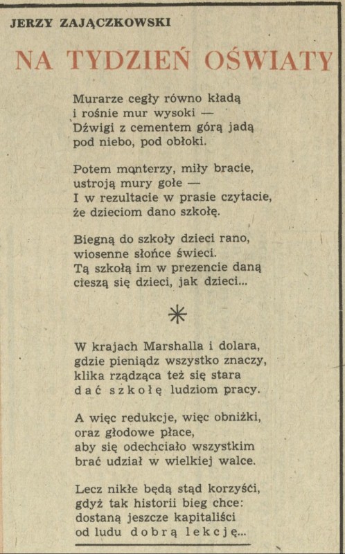 Archiwum / Rozmaitości [old] nr 370 (19/1952) 12565/123969 Podziel się Tytuł Na Tydzień Oświaty Autor Jerzy Zajączkowski Rubryka Rozmaitości [old] Artykuł z numeru 370 (19/1952) Data wydania 11 maja 1952 Tagi wiesz