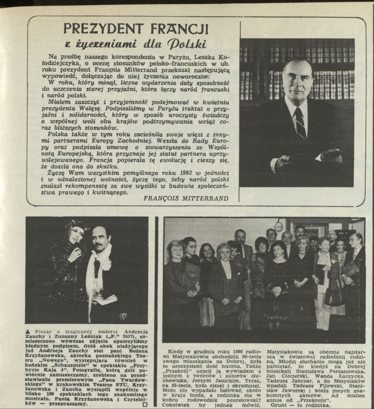 Archiwum / Różności nr 2429 (24/1992) 02/268 Podziel się Tytuł Prezydent Francji z życzeniami dla Polski Autor Francois Mitterrand Kategoria Różności Artykuł z numeru 2429 (2430/1992) Data wydania 12 stycznia 1991