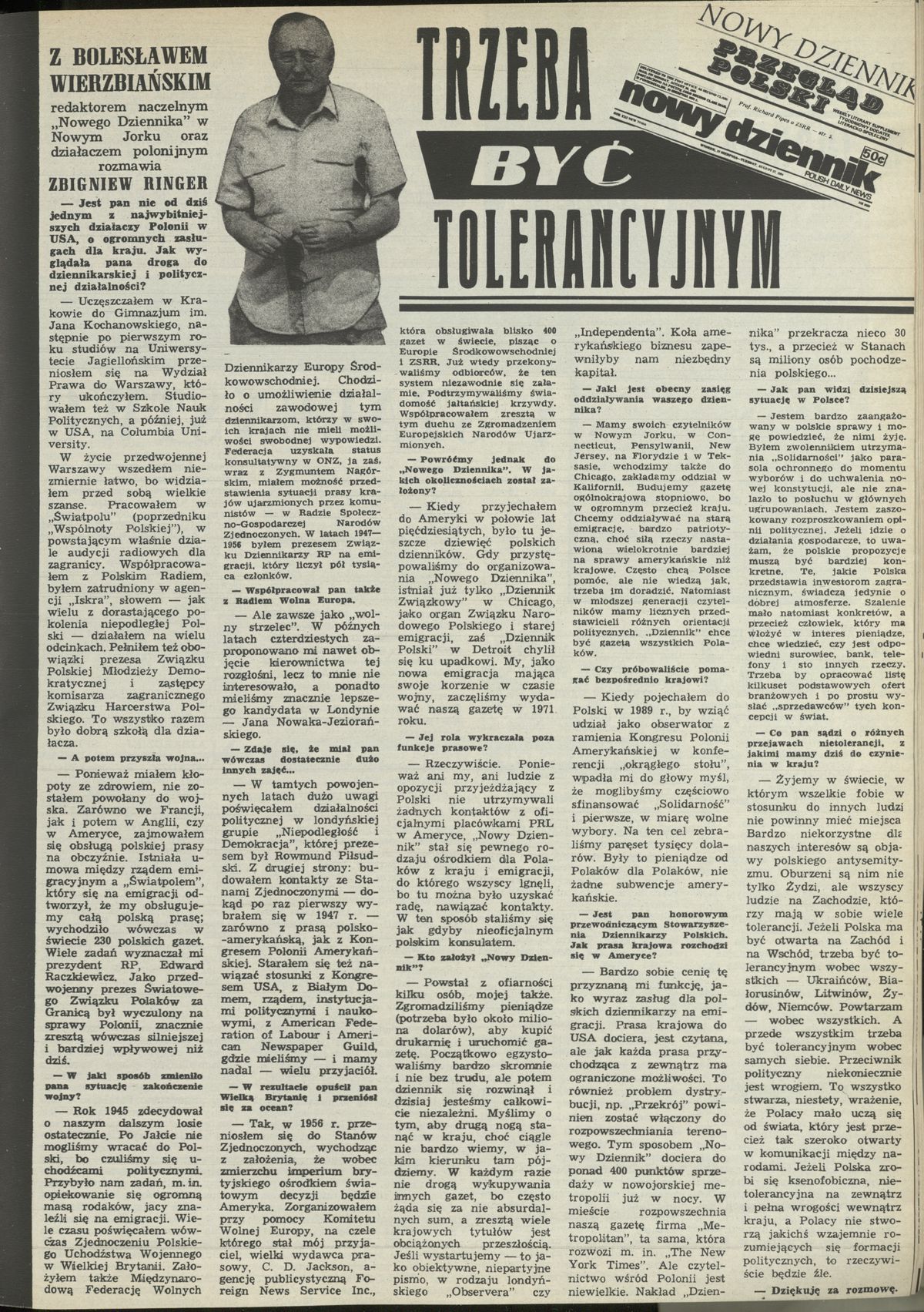 Archiwum / Wywiad nr 2429 (24/1992) 98351/123969 Podziel się Tytuł Trzeba być tolerancyjnym Autor Stefan Ringer Kategoria Wywiad Artykuł z numeru 2429 (2430/1992) Data wydania 12 stycznia 1991 Tagi Bolesław Wierzbiański