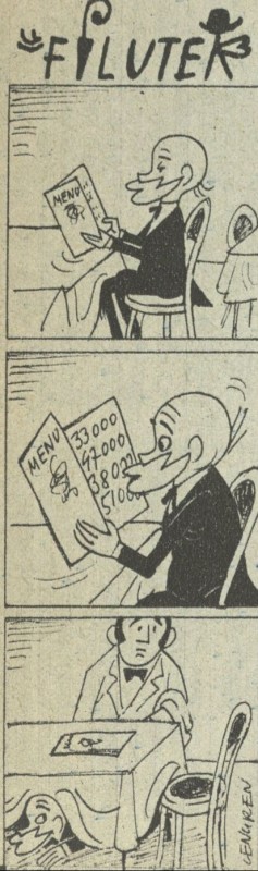 Archiwum / Profesor Filutek nr 2387 (23/1991) 13/52 Podziel się Tytuł Prof. Filutek Autor Zbigniew Lengren Rubryka Profesor Filutek Artykuł z numeru 2387 (2388/1991) Data wydania 24 marca 1991 Tagi żart rysunkowy restauracja menu ceny