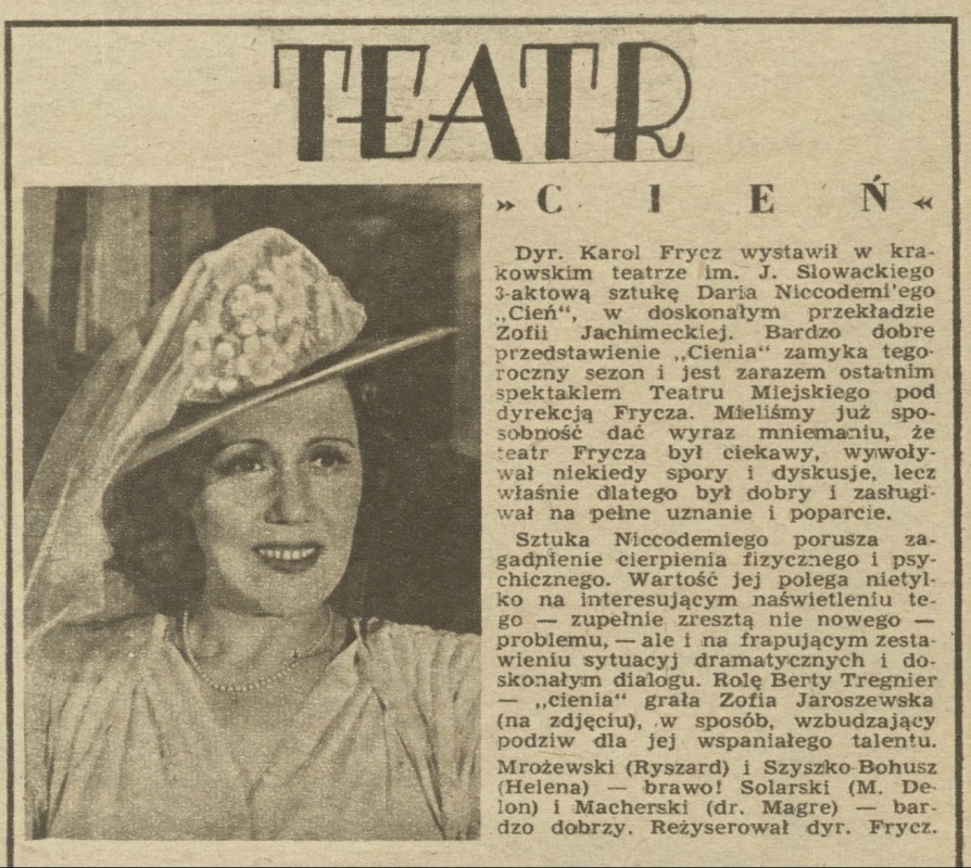 Archiwum / Teatr nr 70 (32/1946) 09/60 Podziel się Tytuł Cień Rubryka Teatr Artykuł z numeru 70 (32/1946) Data wydania 17 sierpnia 1946 Tagi Karol Frycz Teatr Słowackiego