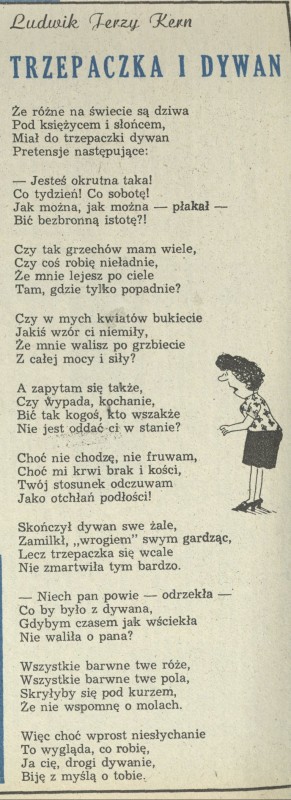 Archiwum / Rozmaitości [old] nr 2347 (23/1990) 66/143 Podziel się Tytuł Trzepaczka i dywan Autor Ludwik Jerzy Kern Rubryka Rozmaitości [old] Artykuł z numeru 2347 (2348/1990) Data wydania 17 czerwca 1990