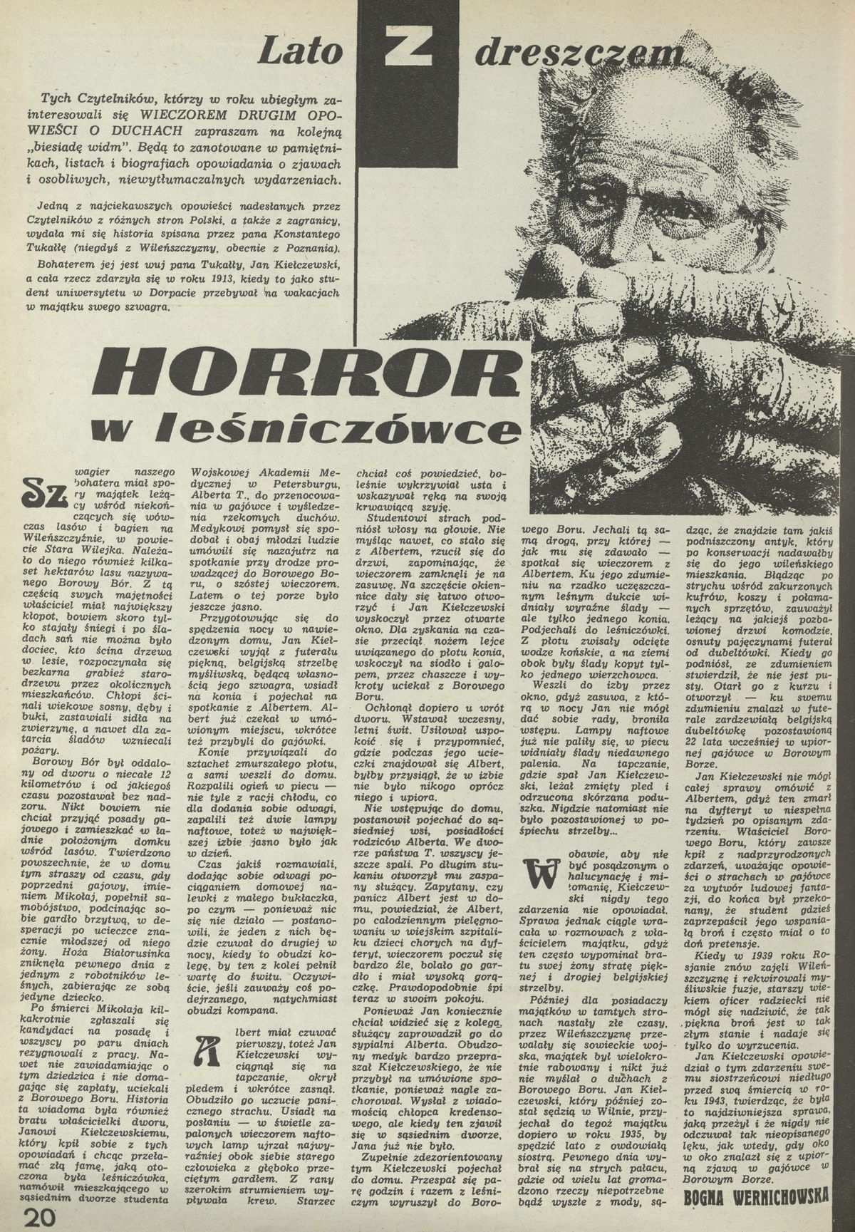 Archiwum / Opowiadanie nr 2349 (23/1990) 04/128 Podziel się Tytuł Lato z dreszczem. Horror w leśniczówce Autor Bo Wer Kategoria Opowiadanie Artykuł z numeru 2349 (2350/1990) Data wydania 1 lipca 1990