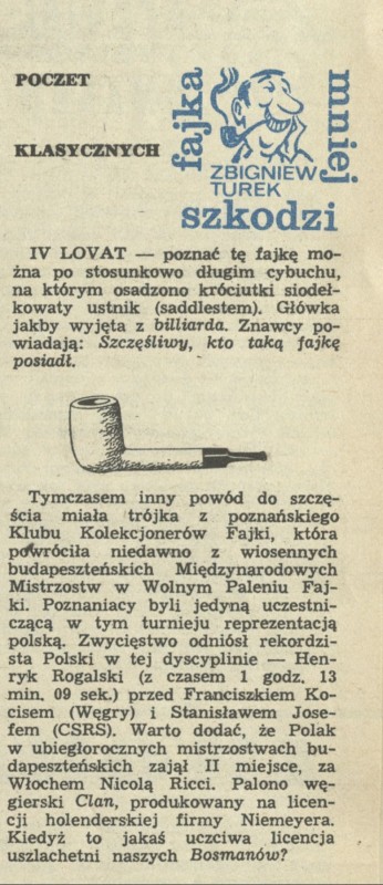 Archiwum / Fajka mniej szkodzi nr 2338 (23/1990) 04/120 Podziel się Tytuł Poczet klasycznych Autor Zbigniew Turek Rubryka Fajka mniej szkodzi Artykuł z numeru 2338 (2339/1990) Data wydania 15 kwietnia 1990 Tagi palenie fajka fajczarze