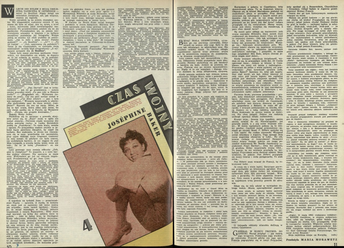 Archiwum / Opowiadanie nr 2112 (48/1985) 4/5 Podziel się Tytuł Czas wojny Autor Maria Morawetz Kategoria Opowiadanie Artykuł z numeru 2112 (48/1985) Data wydania 25 listopada 1985 Tagi Josephine Baker tancerka