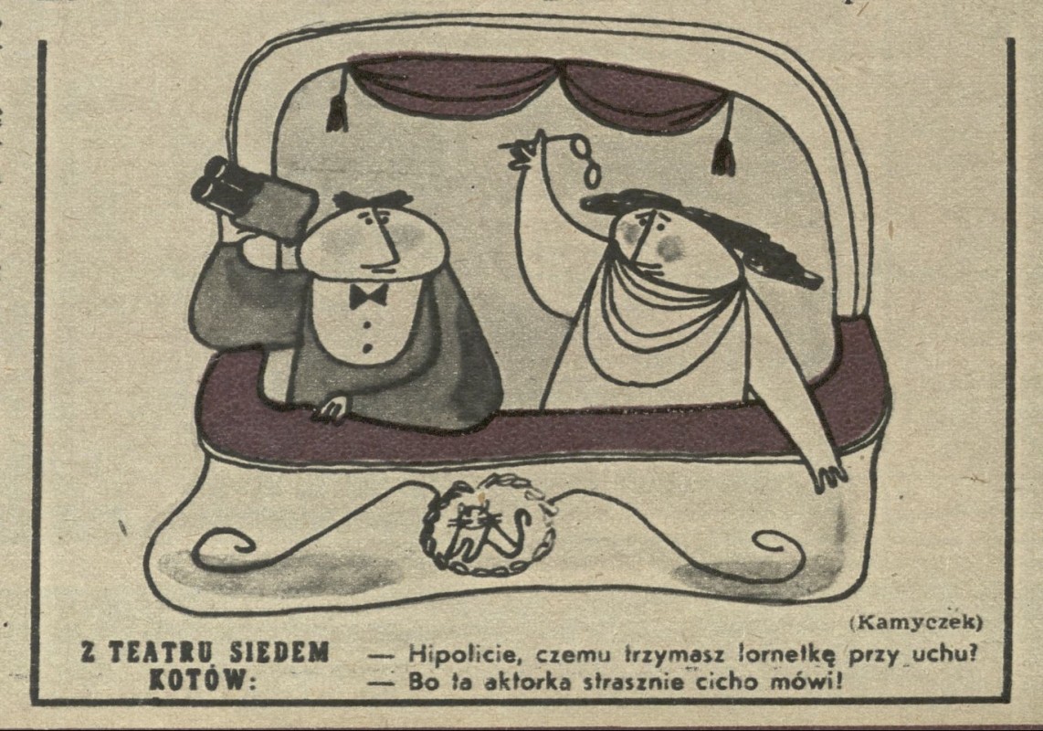 Archiwum / Teatr nr 76 (38/1946) 56/186 Podziel się Tytuł Z teatru siedem kotów Autor Jan Kamyczek Rubryka Teatr Artykuł z numeru 76 (38/1946) Data wydania 22 września 1946 Tagi kamyczek rysunek Hipolit