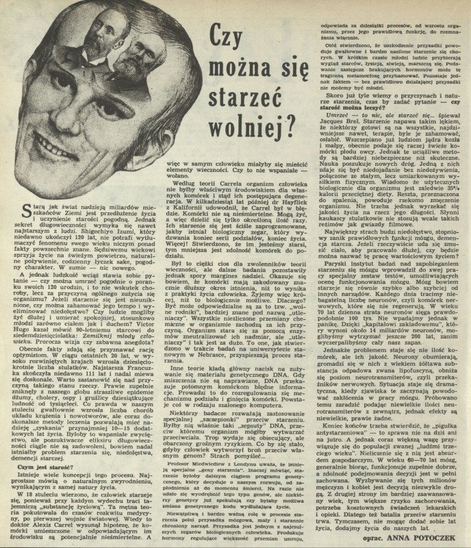 Archiwum / Nauka nr 2112 (48/1985) 1/1 Podziel się Tytuł Czy można się starzeć wolniej ? Autor Anna Potoczek Kategoria Nauka Artykuł z numeru 2112 (48/1985) Data wydania 25 listopada 1985 Tagi długość życia starość dna geny