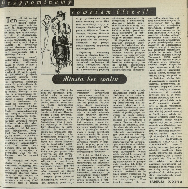 Archiwum / Różności nr 2316 (44/1989) 95421/123969 Podziel się Tytuł Przypominamy: rowerem bliżej Autor Tadeusz Kopta Kategoria Różności Artykuł z numeru 2316 (44/1989) Data wydania 12 listopada 1989 Tagi ekologia powietrze ochrona środowiska rower komunikacja