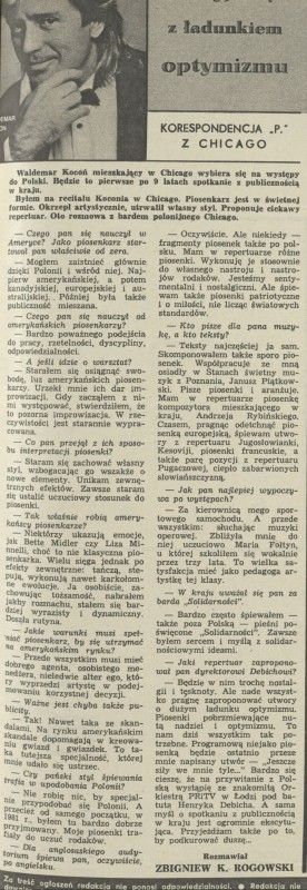 Archiwum / korespondencja własna "Przekroju" nr 2339 (23/1990) 32/102 Podziel się Tytuł Przyjadę z ładunkiem optymizmu Autor Zbigniew K. Rogowski Rubryka korespondencja własna "Przekroju" Artykuł z numeru 2339 (2340/1990) Data wydania 20 kwietnia 1990 Tagi Waldemar Kocoń Chicago