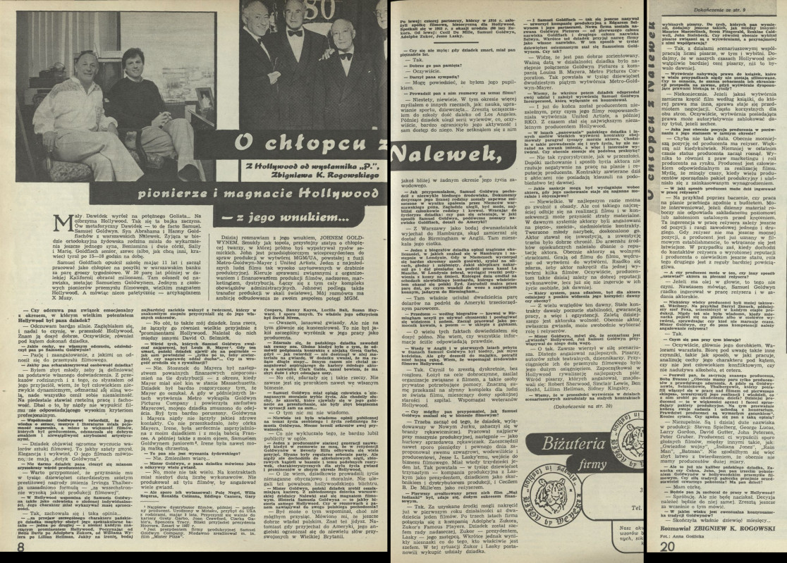 Archiwum / korespondencja własna "Przekroju" nr 2388 (23/1991) 214/271 Podziel się Tytuł O chłopcu z Nalewek Autor Zbigniew K. Rogowski Rubryka korespondencja własna "Przekroju" Artykuł z numeru 2388 (2389/1991) Data wydania 31 marca 1991 Tagi film kinematografia Samuel Goldwyn