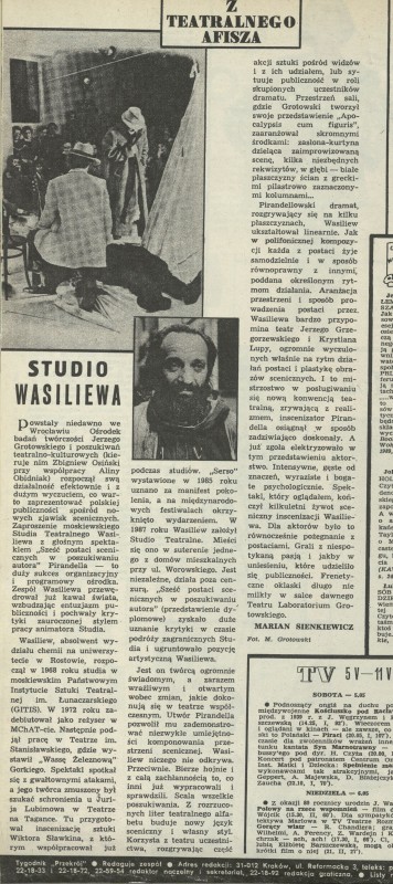 Archiwum / Teatr nr 2341 (23/1990) 1/1 Podziel się Tytuł Z teatralnego afisza Autor Marian Sienkiewicz Rubryka Teatr Artykuł z numeru 2341 (2342/1990) Data wydania 6 maja 1990 Tagi teatr studio Wasiliewa
