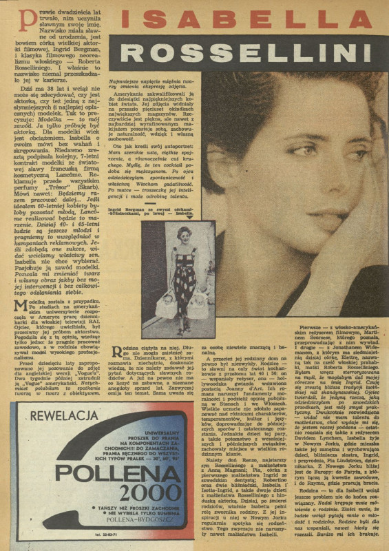 Archiwum / Artykuł nr 2384 (23/1991) 151/172 Podziel się Tytuł Isabella Rosselini Autor Stella Varcaby Kategoria Artykuł Artykuł z numeru 2384 (2385/1991) Data wydania 3 marca 1991 Tagi film aktorka Izabella Rosselini Isabella Rossellini