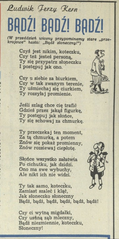 Archiwum / Poezja nr 2386 (23/1991) 72/322 Podziel się Tytuł Bądź, bądź, bądź! Autor Ludwik Jerzy Kern Kategoria Poezja Artykuł z numeru 2386 (2387/1991) Data wydania 17 marca 1991