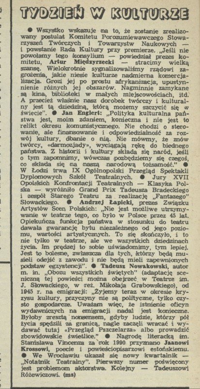 Archiwum / Tydzień w kulturze nr 2389 (23/1991) 98914/123969 Podziel się Tytuł Tydzień w kulturze Rubryka Tydzień w kulturze Artykuł z numeru 2389 (2390/1991) Data wydania 7 kwietnia 1991 Tagi Tadeusz Nowakowski