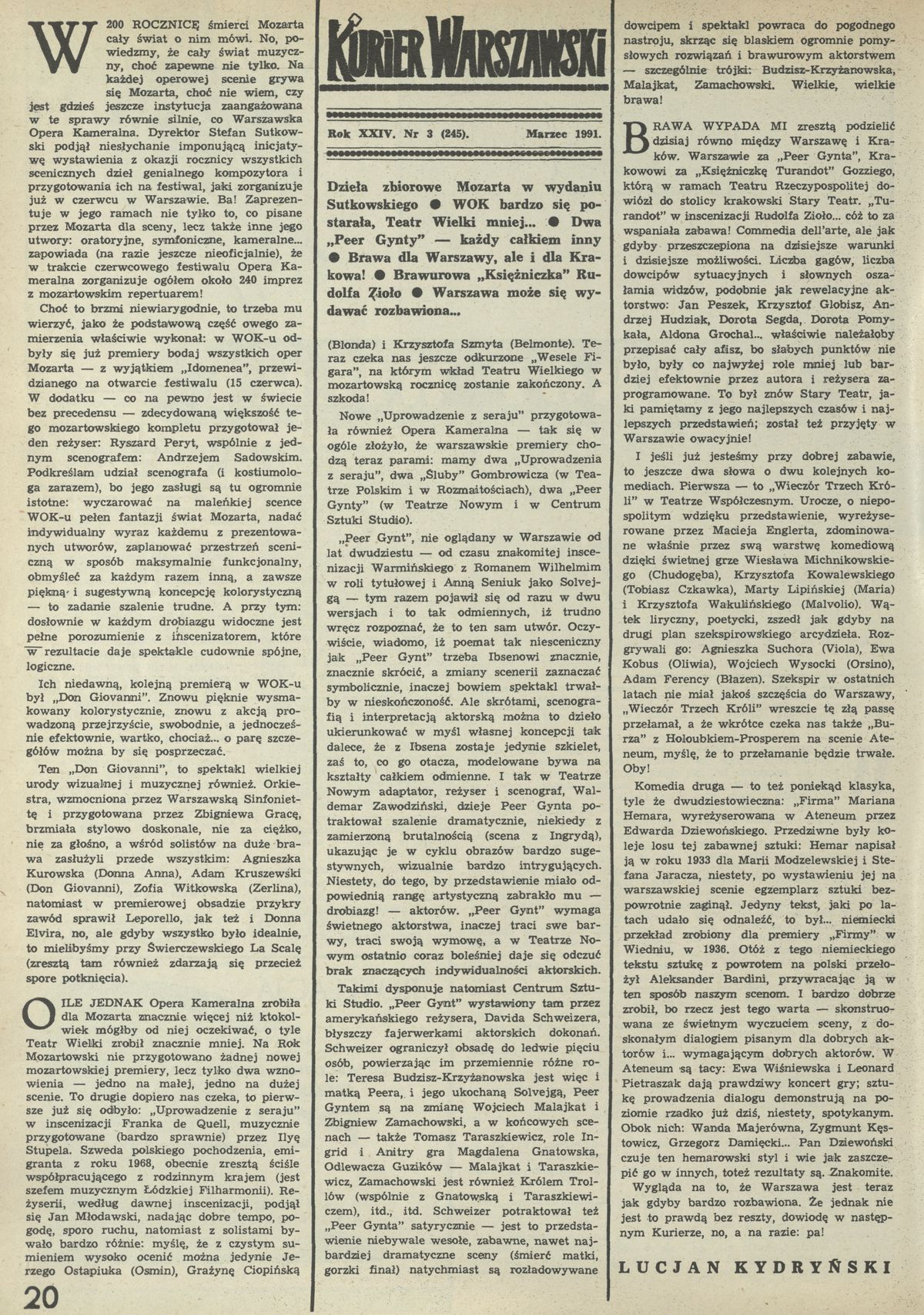Archiwum / Kurier Warszawski nr 2389 (23/1991) 11/14 Podziel się Tytuł Kurier Warszawski Autor Lucjan Kydryński Rubryka Kurier Warszawski Artykuł z numeru 2389 (2390/1991) Data wydania 7 kwietnia 1991