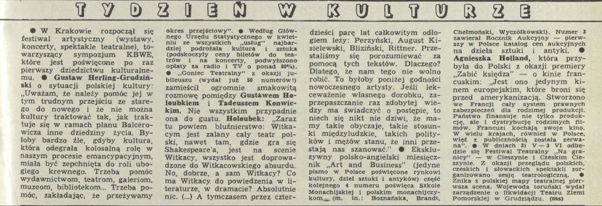 Archiwum / Tydzień w kulturze nr 2397 (23/1991) 99373/123969 Podziel się Tytuł Tydzień w kulturze Rubryka Tydzień w kulturze Artykuł z numeru 2397 (2398/1991) Data wydania 19 czerwca 1991 Tagi Agnieszka Holland Gustaw Holubek Tadeusz Konwicki