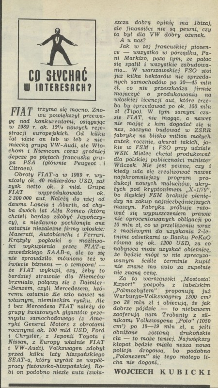 Archiwum / Artykuł nr 2343 (23/1990) 169/405 Podziel się Tytuł Co słychać w interesach? Autor Wojciech Kubicki Kategoria Artykuł Artykuł z numeru 2343 (2344/1990) Data wydania 20 maja 1990