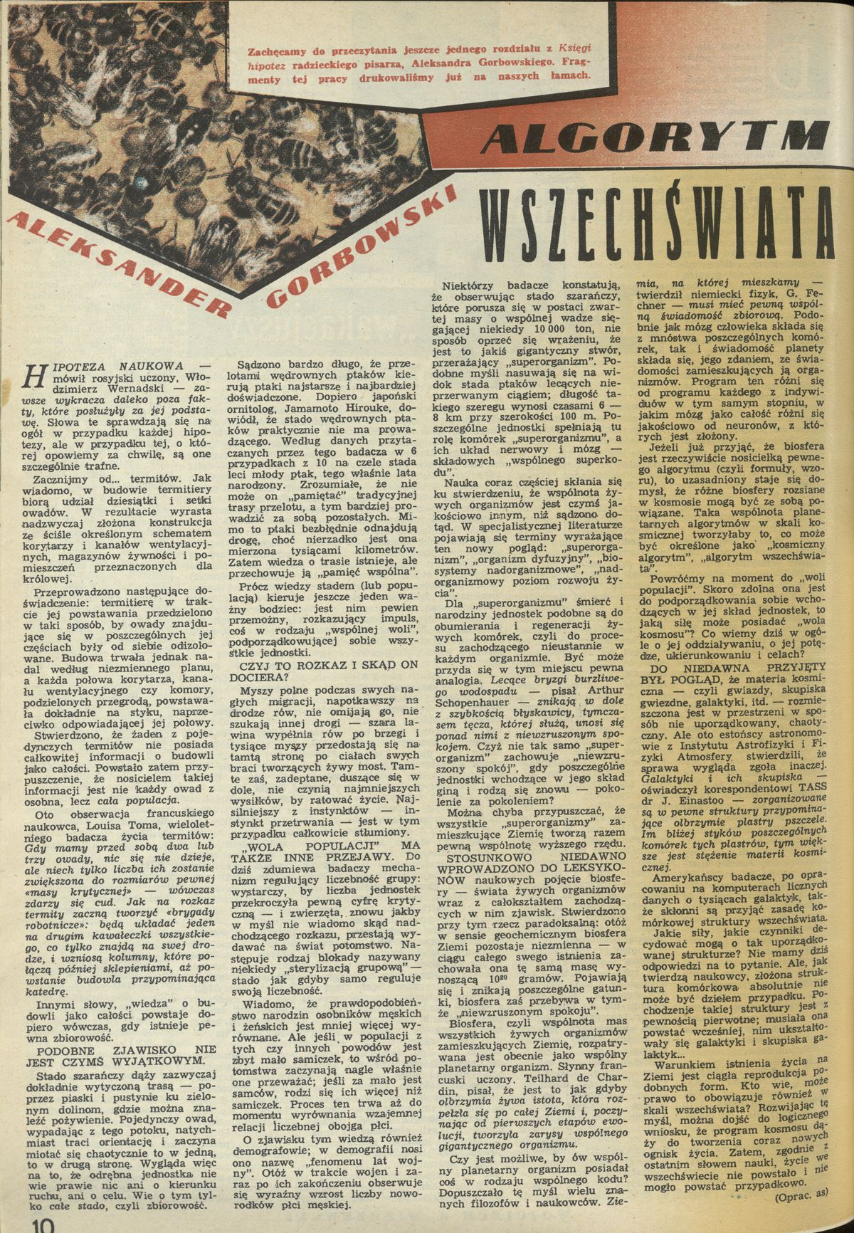 Archiwum / Artykuł nr 2343 (23/1990) 294/311 Podziel się Tytuł Algorytm wszechświata Autor Aleksander Gorbowski as Kategoria Artykuł Artykuł z numeru 2343 (2344/1990) Data wydania 20 maja 1990 Tagi biologia zwierzęta