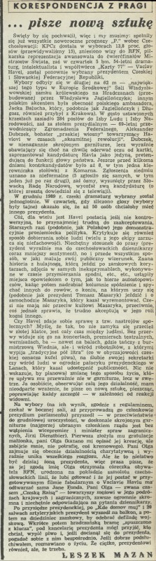 Archiwum / Artykuł nr 2351 (23/1990) 11/37 Podziel się Tytuł ...pisze nową sztukę Autor Leszek Mazan Kategoria Artykuł Artykuł z numeru 2351 (2352/1990) Data wydania 15 lipca 1990 Tagi Czechy polityka