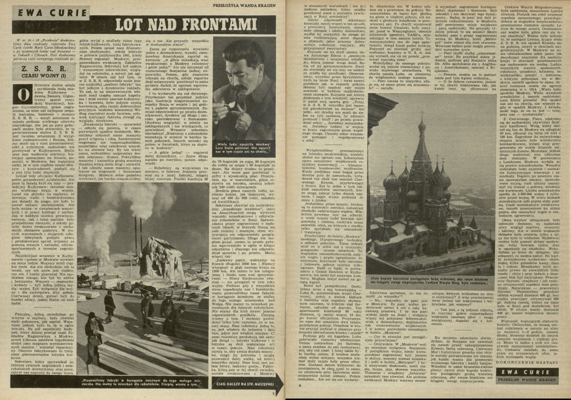 Archiwum / Reportaż nr 80 (42/1946) 35/954 Podziel się Tytuł Lot nad frontami. Z.S.R.R. czasu wojny Autor Ewa Curie Kategoria Reportaż Artykuł z numeru 80 (42/1946) Data wydania 28 października 1946
