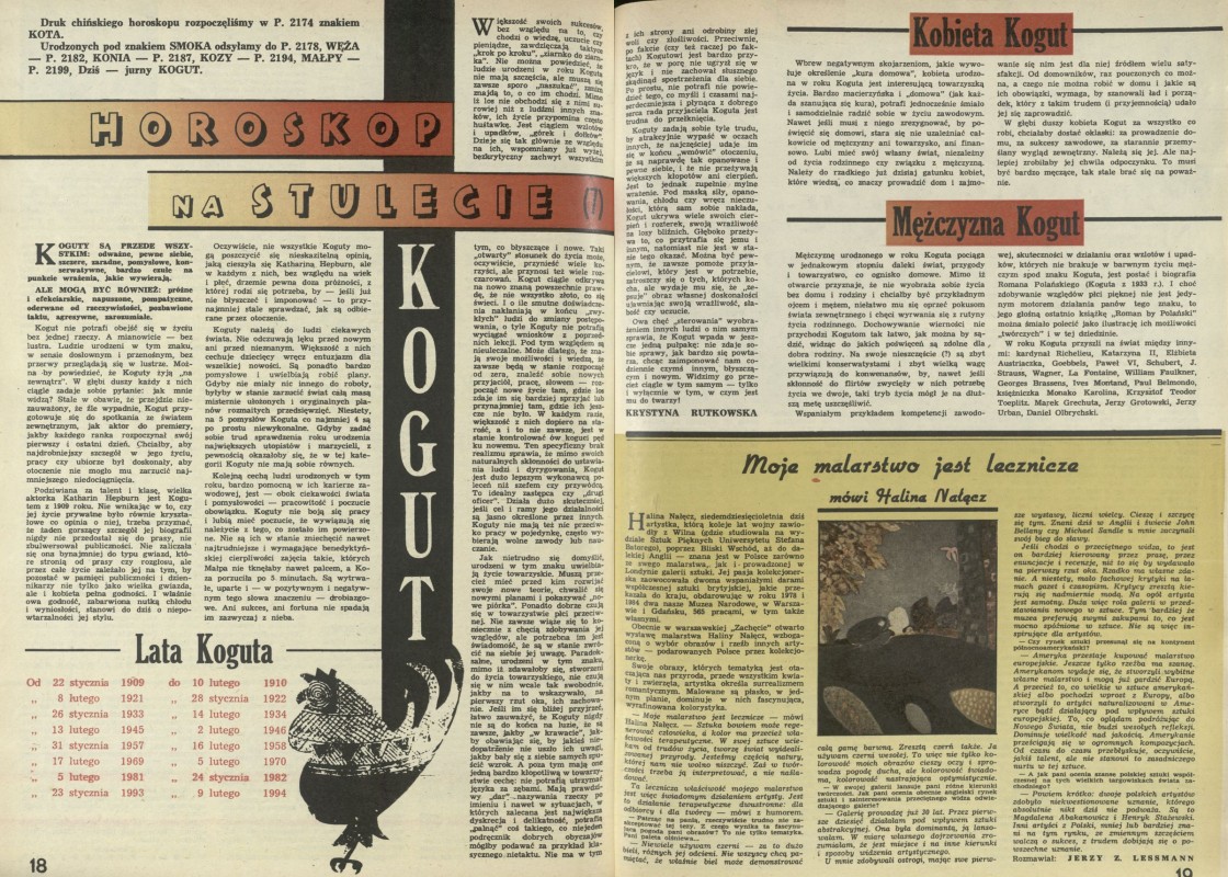 Archiwum / Artykuł nr 2205 (37/1987) 54/65 Podziel się Tytuł Horoskop na stulecie. Kogut Autor Krystyna Rutkowska Kategoria Artykuł Artykuł z numeru 2205 (37/1987) Data wydania 13 września 1987