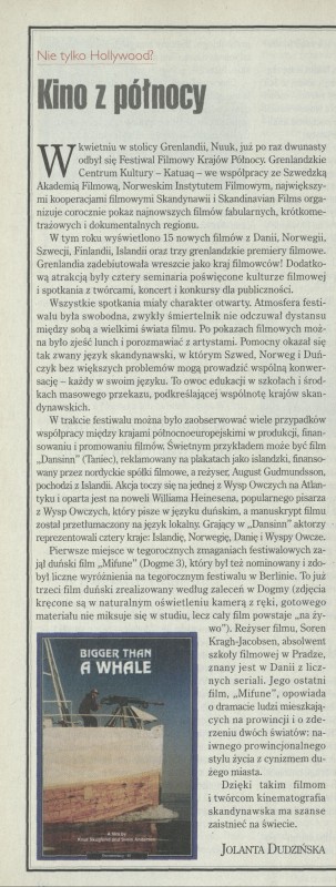 Archiwum / Recenzja nr 2814 (28/1999) 1/1 Podziel się Tytuł Kino z północy Autor Jolanta Dudzińska Kategoria Recenzja Artykuł z numeru 2814 (2815/1999) Data wydania 30 maja 1999 Tagi film Bigger Than