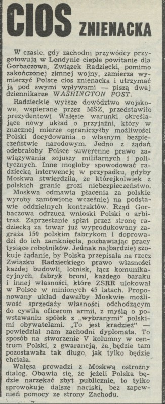 Archiwum / Artykuł nr 2402 (24/1991) 1/3 Podziel się Tytuł Cios znienacka Kategoria Artykuł Artykuł z numeru 2402 (2403/1991) Data wydania 7 lipca 1991