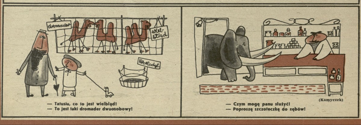 Archiwum / Historyjki obrazkowe nr 80 (42/1946) 2227/123969 Podziel się Tytuł [Tatusiu, co to jest wielbłąd!] Autor Jan Kamyczek Kategoria Historyjki obrazkowe Artykuł z numeru 80 (42/1946) Data wydania 28 października 1946 Tagi wielbłąd słoń