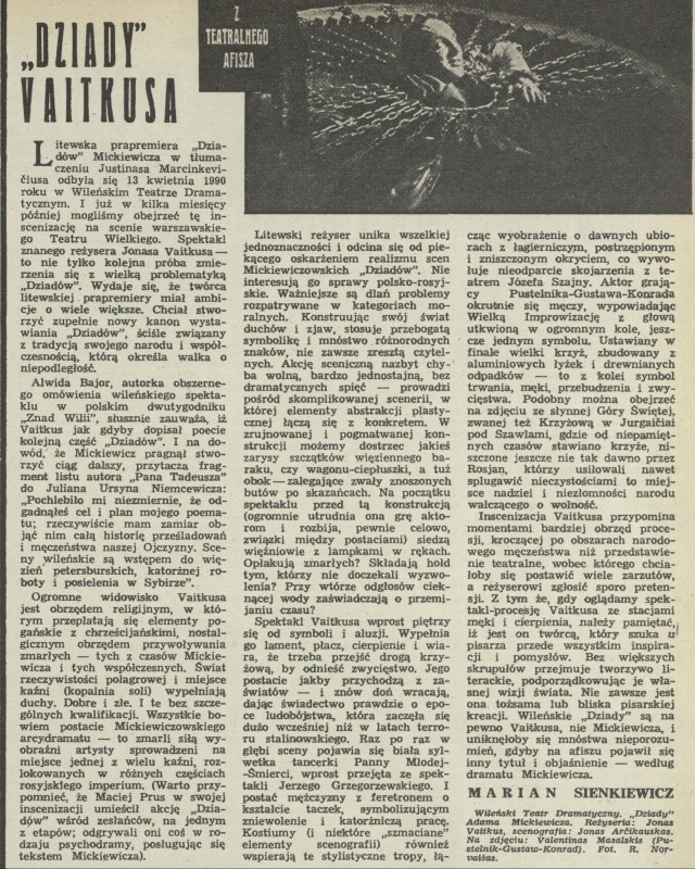 Archiwum / Teatr nr 2352 (23/1990) 05/15 Podziel się Tytuł Z teatralnego afisza: „Dziady” Vaitkusa Autor Marian Sienkiewicz Rubryka Teatr Artykuł z numeru 2352 (2353/1990) Data wydania 22 lipca 1990 Tagi teatr Dziady Adma Mickiewicz Vaitkus