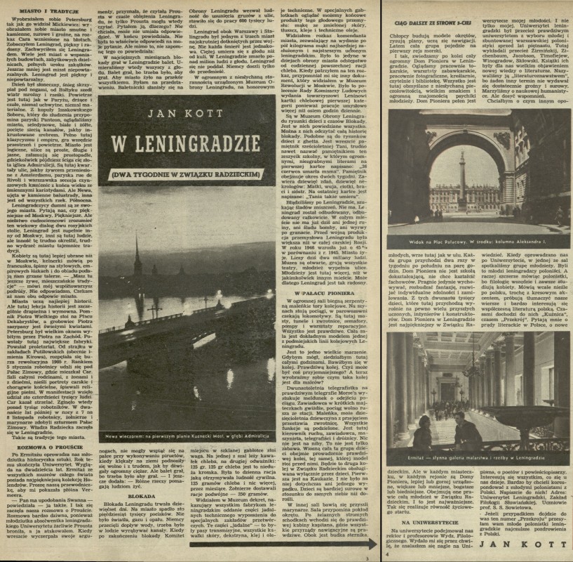 Archiwum / Relacja nr 144 (02/1948) 3/6 Podziel się Tytuł W Leningradzie (Dwa tygodnie w Związku Radzieckim) Autor Jan Kott Kategoria Relacja Artykuł z numeru 144 (2/1948) Data wydania 11 stycznia 1948