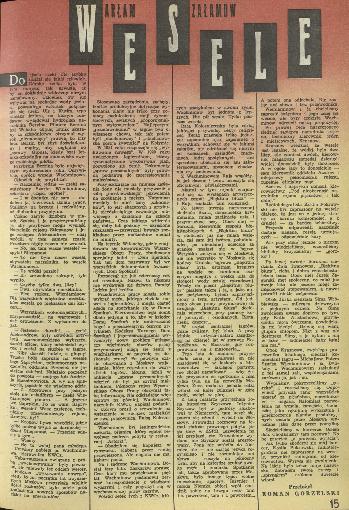 Archiwum / Opowiadanie nr 2352 (23/1990) 69/126 Podziel się Tytuł Wesele Autor Warłam Szałamow Kategoria Opowiadanie Artykuł z numeru 2352 (2353/1990) Data wydania 22 lipca 1990 Tagi Wesele Warłam Szałamow proza