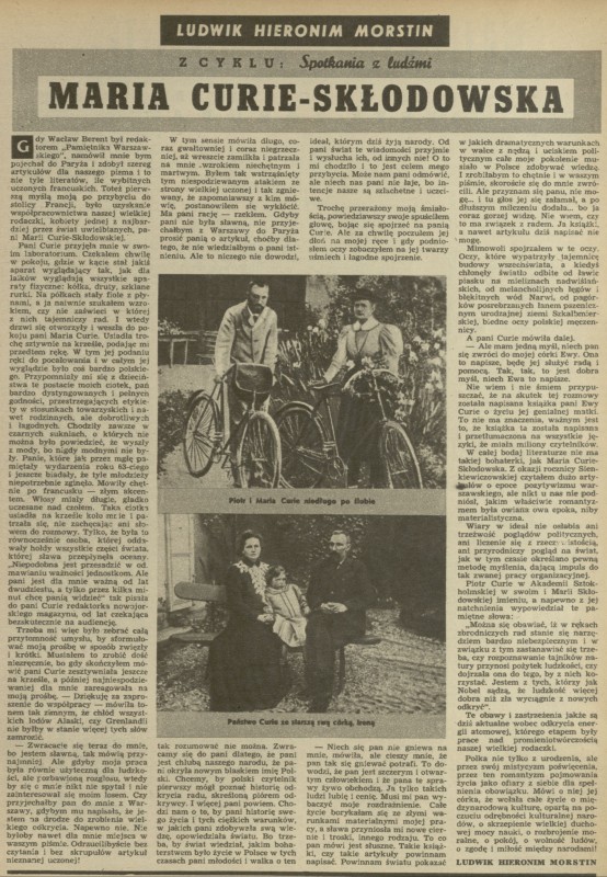 Archiwum / Artykuł nr 88 (50/1946) 72/401 Podziel się Tytuł Spotkania z ludźmi. Maria Curie-Skłodowska Autor Ludwik Hieronim Morstin Kategoria Artykuł Artykuł z numeru 88 (50/1946) Data wydania 15 grudnia 1946 Tagi Piotr Curie