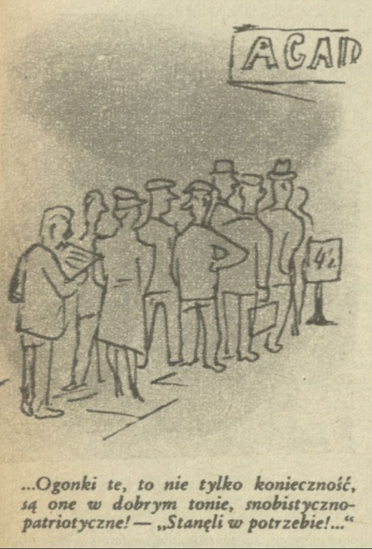 Archiwum / Rysunek nr 88 (50/1946) 55/1682 Podziel się Tytuł ...Ogonki te, to nie tylko konieczność Autor Jerzy Zaruba Kategoria Rysunek Artykuł z numeru 88 (50/1946) Data wydania 15 grudnia 1946