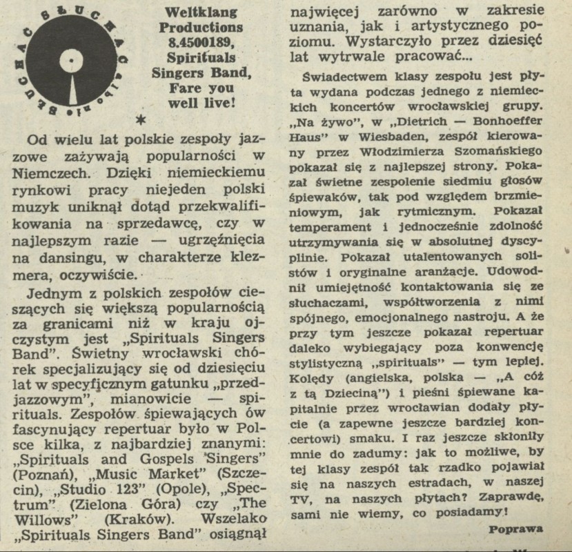 Archiwum / Słuchać albo nie słuchać nr 2381 (23/1991) 18/20 Podziel się Tytuł Słuchać albo nie słuchać Autor Poprawa Rubryka Słuchać albo nie słuchać Artykuł z numeru 2381 (2382/1991) Data wydania 10 lutego 1991