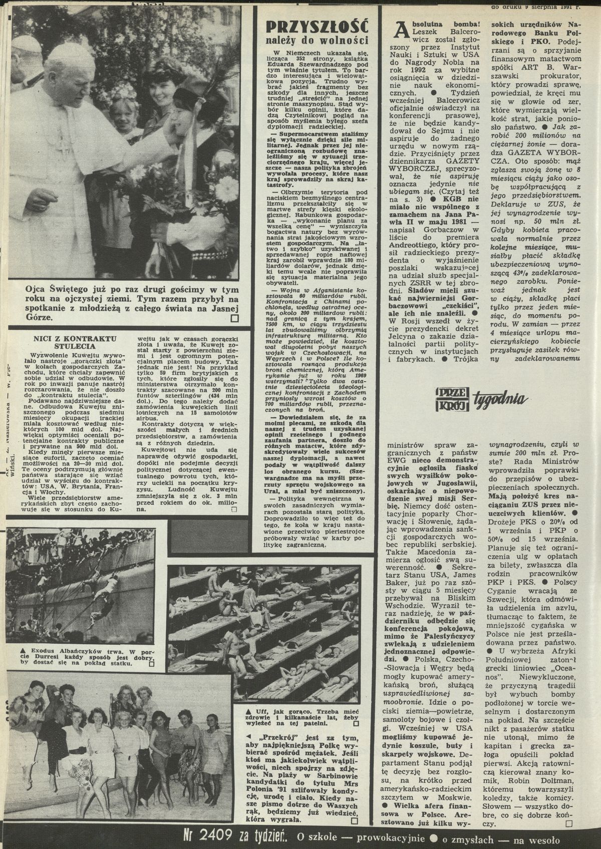 Archiwum / Przekrój tygodnia nr 2408 (24/1991) 52/65 Podziel się Tytuł Przekrój tygodnia Rubryka Przekrój tygodnia Artykuł z numeru 2408 (2409/1991) Data wydania 18 sierpnia 1991 Tagi Jan Paweł II PKO EWG