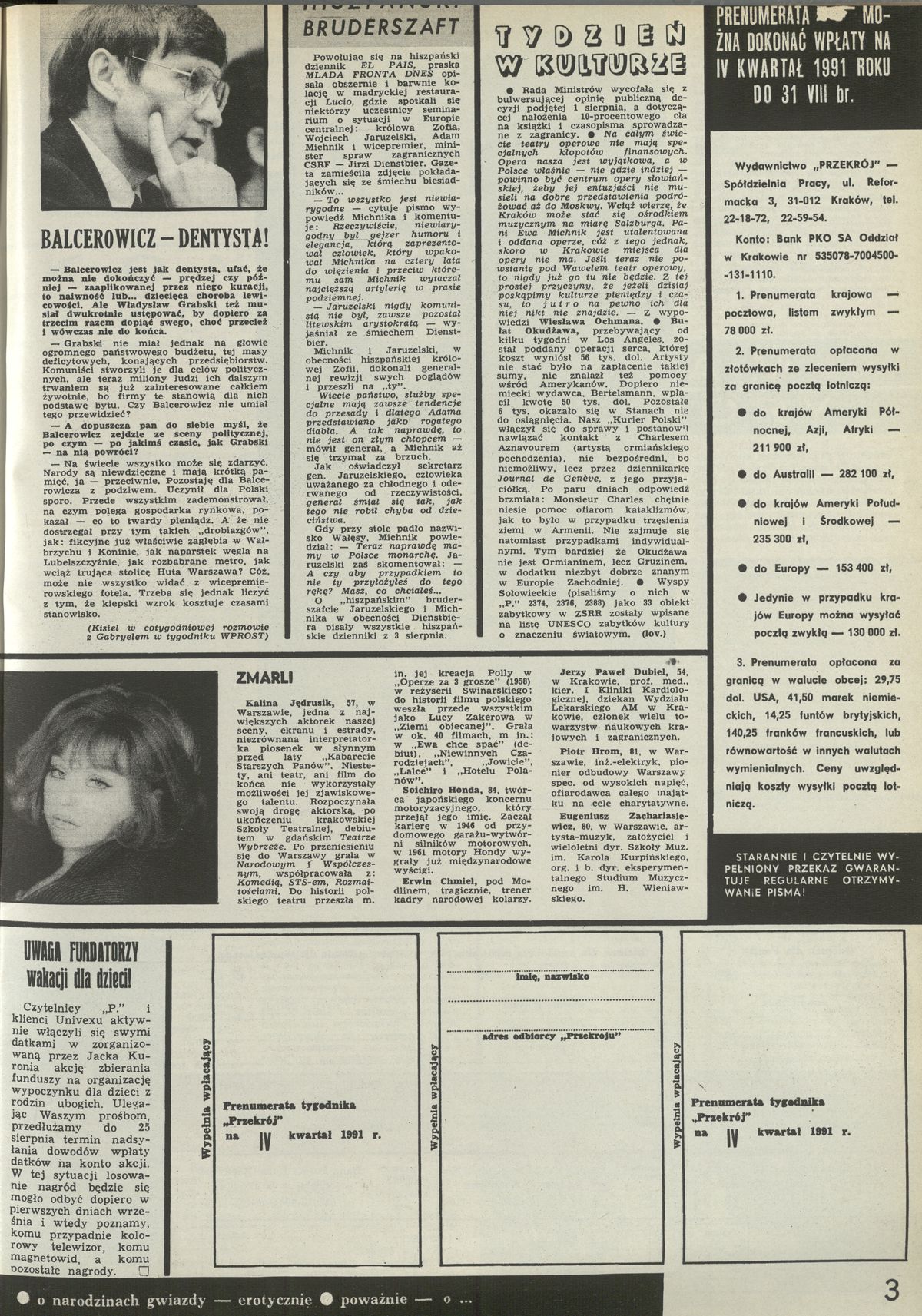 Archiwum / Prenumerata Przekroju nr 2408 (24/1991) 99742/123969 Podziel się Tytuł Prenumerata Rubryka Prenumerata Przekroju Artykuł z numeru 2408 (2409/1991) Data wydania 18 sierpnia 1991