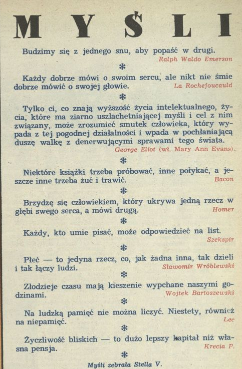 Archiwum / Myśli nr 2382 (23/1991) 26/33 Podziel się Tytuł Myśli Autor Stella Varcaby Rubryka Myśli Artykuł z numeru 2382 (2383/1991) Data wydania 17 lutego 1991 Tagi cytaty myśli aforyzmy