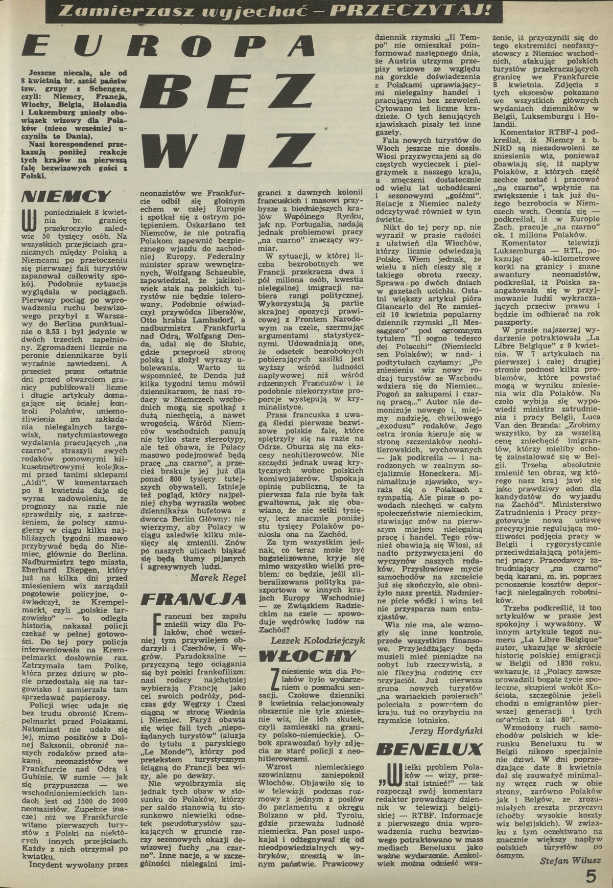 Archiwum / Artykuł nr 2391 (23/1991) 279/795 Podziel się Tytuł Europa bez wiz Autor Stefan WIlusz Kategoria Artykuł Artykuł z numeru 2391 (2392/1991) Data wydania 21 kwietnia 1991 Tagi wiz