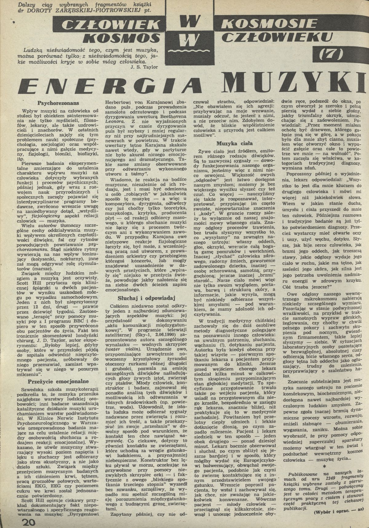 Archiwum / Nauka nr 2355 (23/1990) 54/1109 Podziel się Tytuł Eneregia muzyki Autor as Kategoria Nauka Artykuł z numeru 2355 (2356/1990) Data wydania 12 sierpnia 1990 Tagi Dorota Zarębska-Piotrowska Mądrość ciała kosmos człowiek muzyka energia