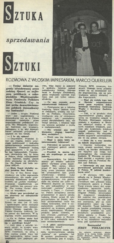 Archiwum / Wywiad nr 2358 (23/1990) 97387/123969 Podziel się Tytuł Sztuka sprzedawania sztuki Autor Jerzy Piekarczyk Kategoria Wywiad Artykuł z numeru 2358 (2359/1990) Data wydania 2 września 1990 Tagi festiwal sztuka kultura