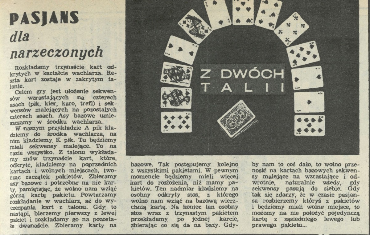 Archiwum / Rozrywka nr 2359 (23/1990) 97467/123969 Podziel się Tytuł Pasjans dla narzeczonych Kategoria Rozrywka Artykuł z numeru 2359 (2360/1990) Data wydania 9 września 1990 Tagi pasjans
