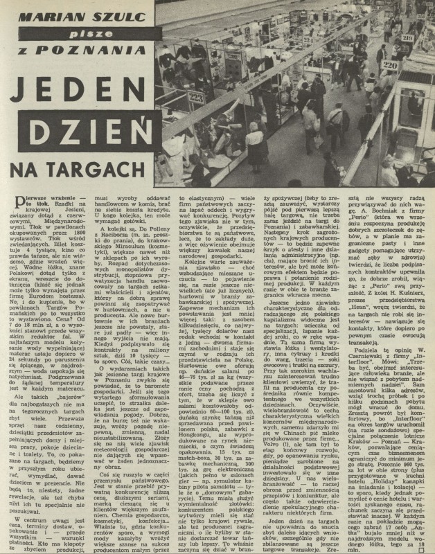 Archiwum / Relacja nr 2361 (23/1990) 10/48 Podziel się Tytuł Jeden dzień na targach Autor Marian Szulc Kategoria Relacja Artykuł z numeru 2361 (2362/1990) Data wydania 23 września 1990 Tagi targi poznańskie Poznań Pollena