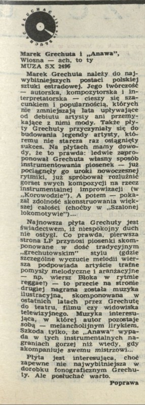 Archiwum / Słuchać albo nie słuchać nr 2192 (24/1987) 47/64 Podziel się Tytuł Słuchać czy nie słuchać Autor Jan Poprawa Rubryka Słuchać albo nie słuchać Artykuł z numeru 2192 (24/1987) Data wydania 14 czerwca 1987 Tagi Grechuta Marek
