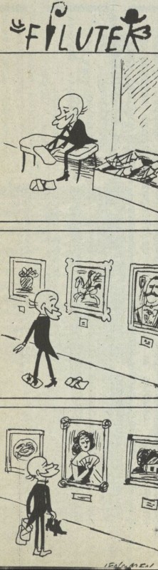 Archiwum / Profesor Filutek nr 2421 (24/1991) 08/86 Podziel się Tytuł Prof. Filutek Autor Zbigniew Lengren Rubryka Profesor Filutek Artykuł z numeru 2421 (2422/1991) Data wydania 17 listopada 1991 Tagi żart rysunkowy muzeum kapcie